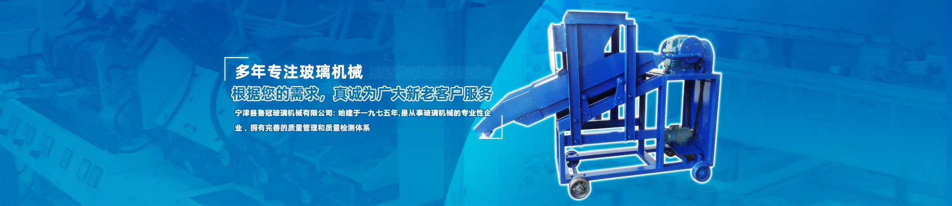 山東魯冠玻璃機(jī)械有限公司,是從事玻璃機(jī)械的專注性企業(yè),產(chǎn)品行銷各地700余家用戶,在我國玻璃制品行業(yè)上享有較高的聲譽(yù)。目前主要生產(chǎn)玻璃加料機(jī),玻璃混料機(jī),煤氣交換器,玻璃原料自動(dòng)配料等玻璃機(jī)械設(shè)備。此外,我公司具備良好的整體素質(zhì)和渾厚的技術(shù)力量,制造工藝完善,設(shè)備完善,具備完善的質(zhì)量管理和質(zhì)量檢測體系。企業(yè)堅(jiān)持“科學(xué)技術(shù)是主要生產(chǎn)力”的主導(dǎo)思想,不斷加強(qiáng)新產(chǎn)品研發(fā)力度,玻璃機(jī)械產(chǎn)品的開發(fā)生產(chǎn),為適應(yīng)玻璃制品行業(yè)發(fā)展需要,相繼先后研制出:斜毯式加料機(jī)、懸掛式加料機(jī)、強(qiáng)制式混合機(jī)等幾十種產(chǎn)品,銷售各地,深受用戶歡迎。 我公司產(chǎn)品已實(shí)現(xiàn):網(wǎng)帶鏈條、玻璃機(jī)械、輸送機(jī)械、玻璃原料自動(dòng)混配、食品機(jī)械五大系列。我公司多年來堅(jiān)持“用戶至上”的原則,真誠為廣大新老客戶服務(wù),竭誠歡迎廣大新老客戶光臨惠顧!